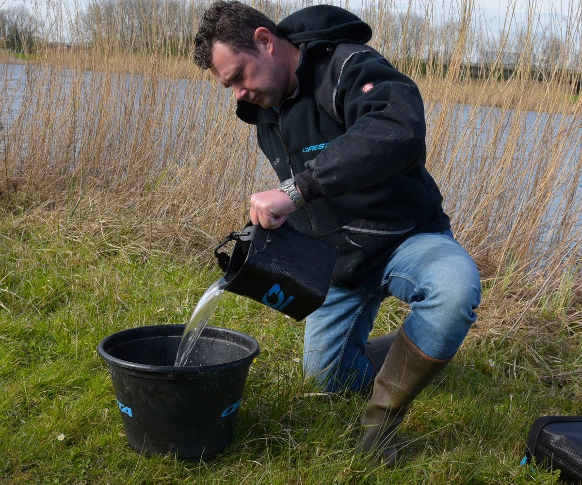 De 5ltr EVA Square Waterbucket schept dankzij de vierkante vorm en centraal bevestigde koord (4m) gemakkelijk water.