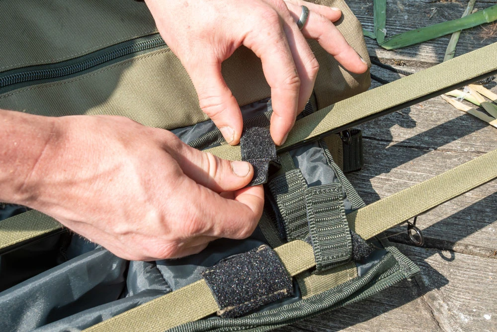 Een traditioneel foudraal voor 3 hengels. Het compacte model maakt deze makkelijk mee te nemen.